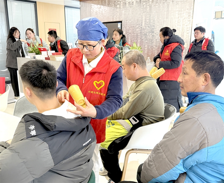 日前,浙江省义乌市中医医院的医护人员走进中通快递浙南管理中心,开启“中医三进服务行进驿站 致敬城市奔跑者”活动。活动设“粥”道服务区、中医诊疗区、针灸推拿按摩区、中医适宜技术理疗区以及中药茶饮体验角等区域,医护人员为快递从业者送上暖暖的腊八粥,提供耐心细致的中医诊疗及适宜技术服务,为快递从业者送上中医药温暖与健康。