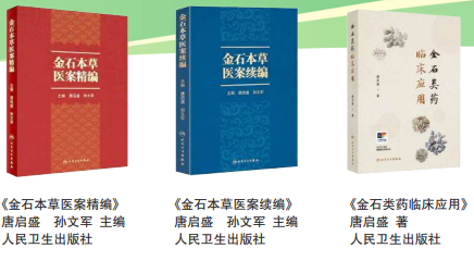 人民卫生出版社先后出版了由唐启盛教授主编的《金石本草医案精编》《金石本草医案续编》以及唐启盛所著的《金石类药临床应用》三部金石类药研究相关著作。该系列著作填补了金石类药物系统性研究的空白,开创了“金石调神”理论,对中医药防治脑病领域产生了深远影响。