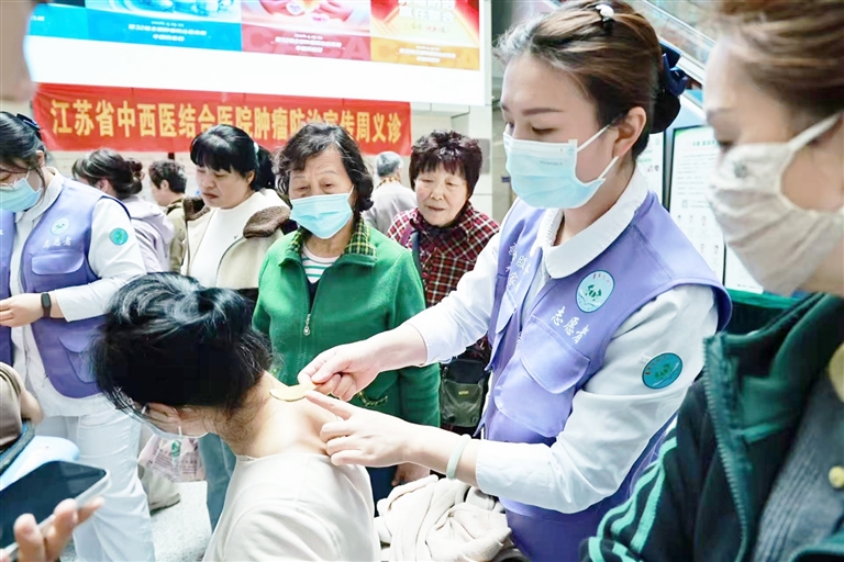 4月15日,江苏省中西医结合医院肿瘤科举办专场义诊活动。多学科专家现场辨证施治,为市民提供个性化肿瘤防治方案与健康指导。现场还开展火龙罐灸、耳穴贴压、刮痧等中医适宜技术体验,并赠送中药香囊。