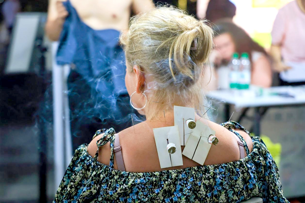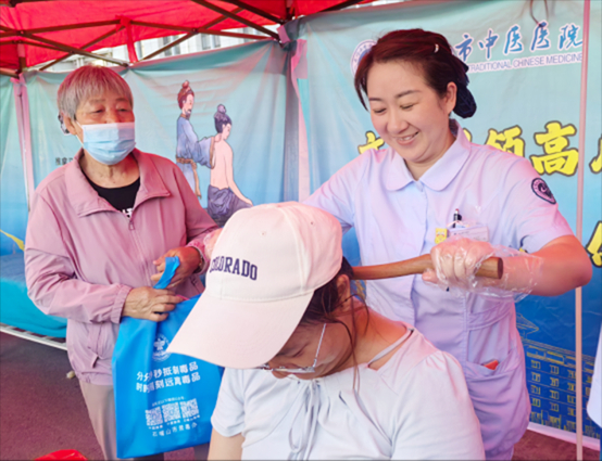 宁夏石嘴山市中医医院,市民体验擀筋棒刮痧疗法