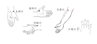 少商穴为肺经井穴,“井主心下满”,故此穴可治疗热邪内郁、气机阻滞引起的发热、呕吐、心下满,对咽痛、咳嗽效果更明显。少商穴位于手拇指末节桡侧,距指甲角0.1寸。如有咽痛、咳嗽、发热等症状,点掐少商穴可缓解。