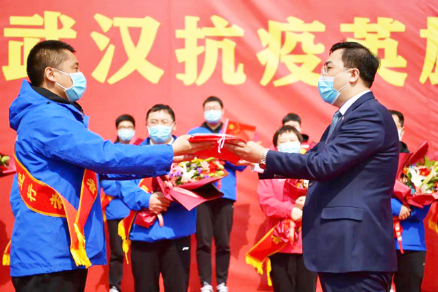4月14日下午,长春中医药大学附属医院为该院派出的41名队员举办欢迎仪式,迎接“雷神战士”凯旋。