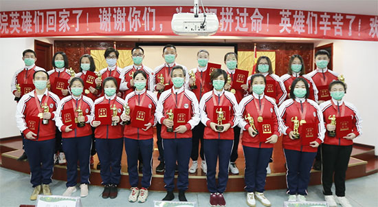 4月17日下午,北京瑶医医院援鄂医疗队21名队员结束隔离, “北京瑶医医院援鄂医疗队凯旋欢迎仪式暨表彰大会”在北京瑶医医院举行,医院授予21名队员 “最美逆行者”荣誉称号和奖杯。