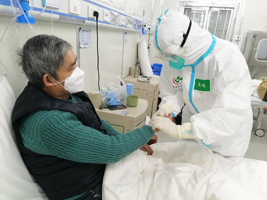 雷神山医院ICU病区中,81岁的重症患者吴阿婆情况直转急下,氧饱和度一度降至69%,CT显示两肺弥漫性改变,还合并糖尿病、高血压、肾功能不全、低蛋白血症、低钾血症等。国家中医医疗队队员们迅速对吴阿婆制定了个性化综合救治方案,在高流量吸氧、抗菌、平衡电解质、营养支持等西医综合治疗的基础上,联合中药注射剂、辨证化裁中药汤剂以及心包经针刺治疗,几天后,吴阿婆情况有了明显好转。“我真的很感谢你们,家里人都以为我挺不过去的,是你们让我重生”。吴阿婆说。