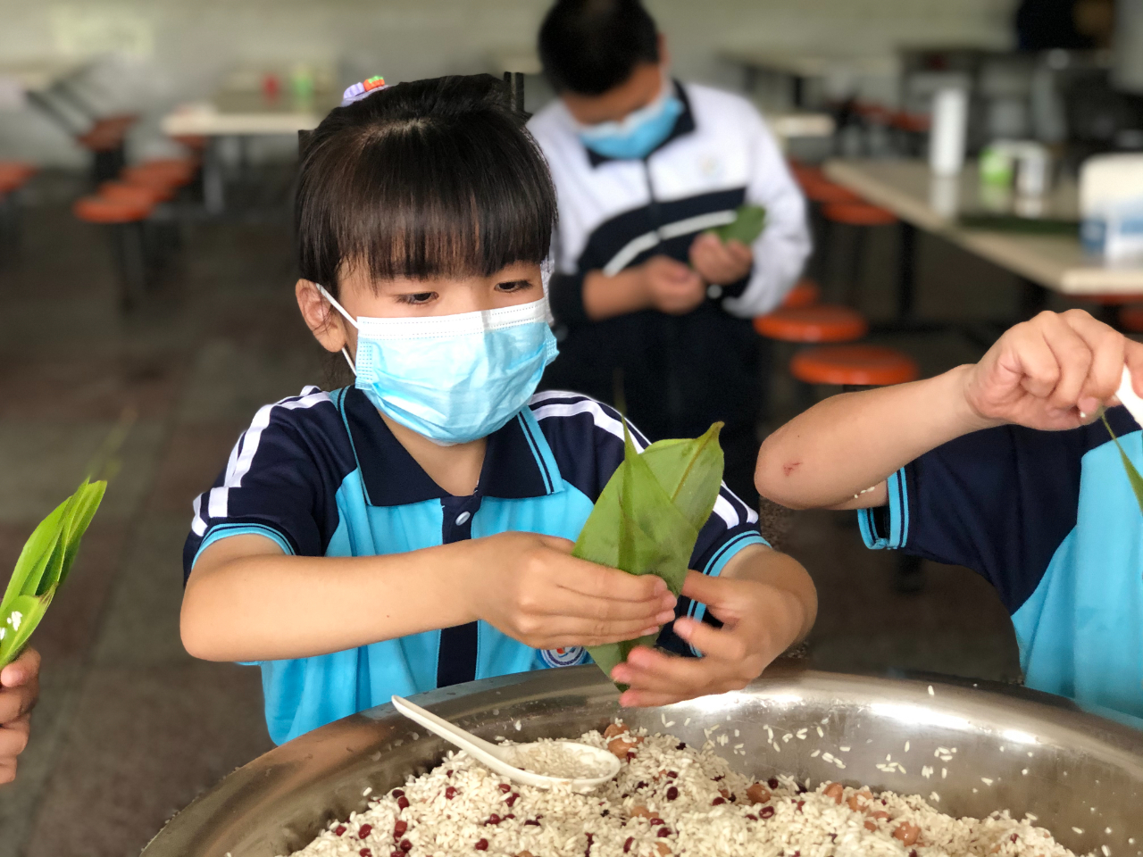 三明市泰宁县下渠镇中心小学学生端午节包粽子