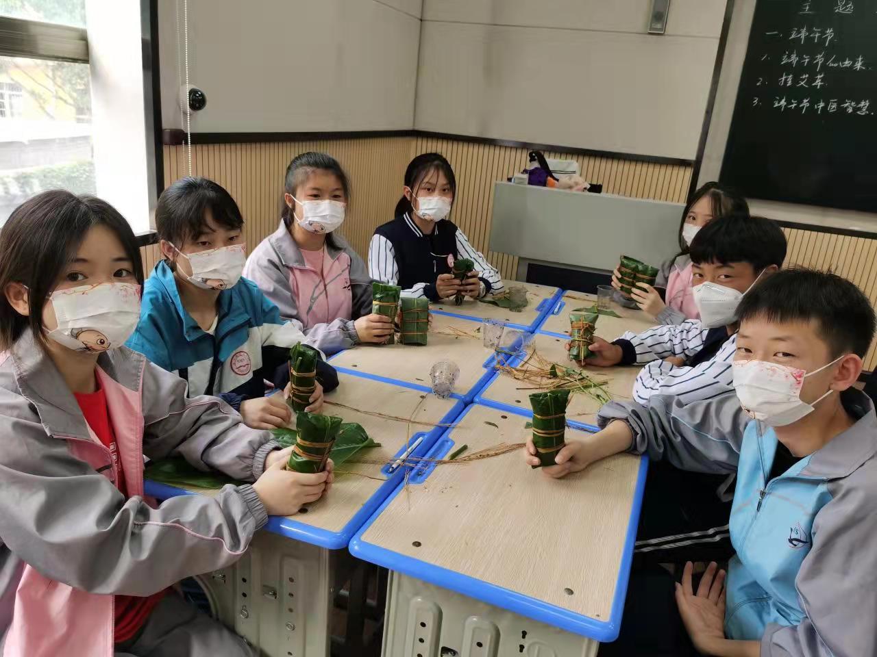 黔西南州贞丰县民族中学学生佩戴灸童文创口罩展示动手包的粽子