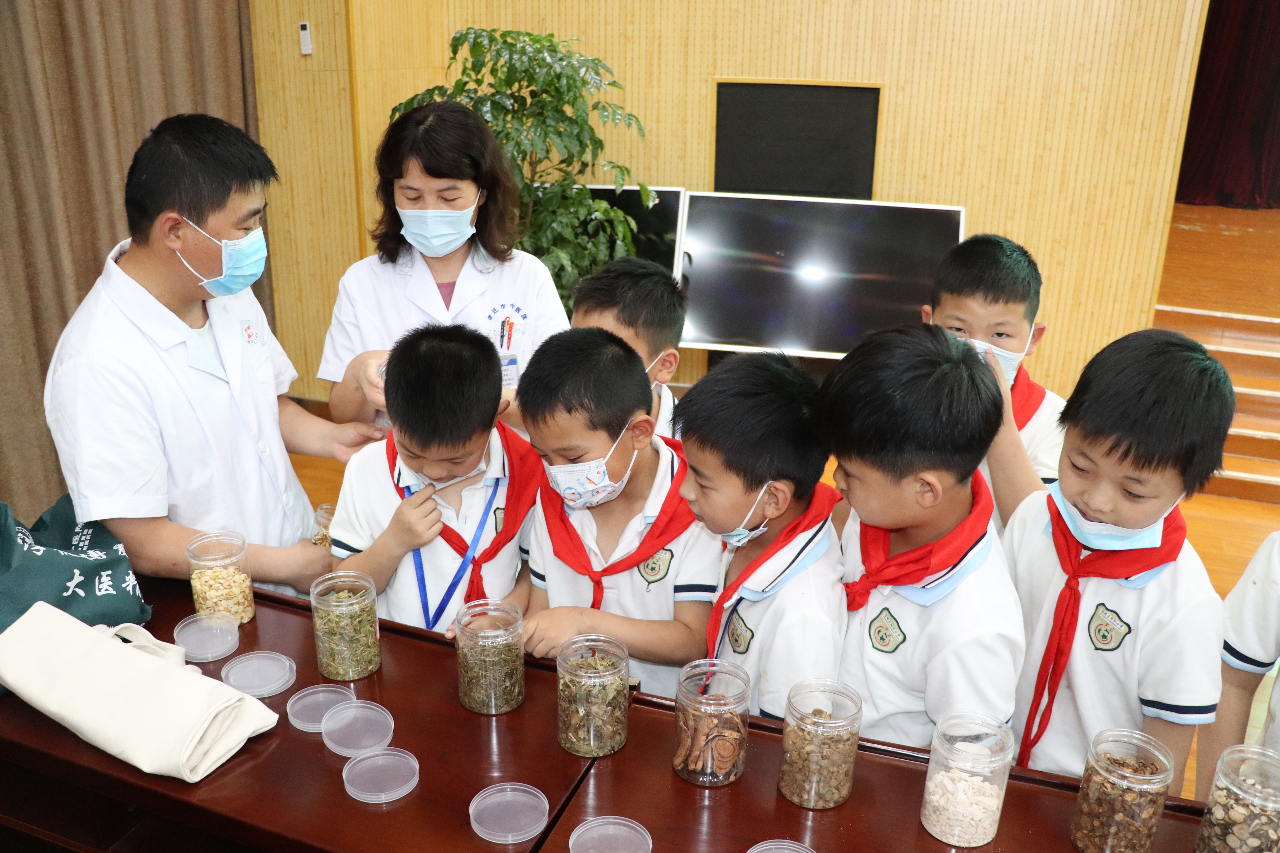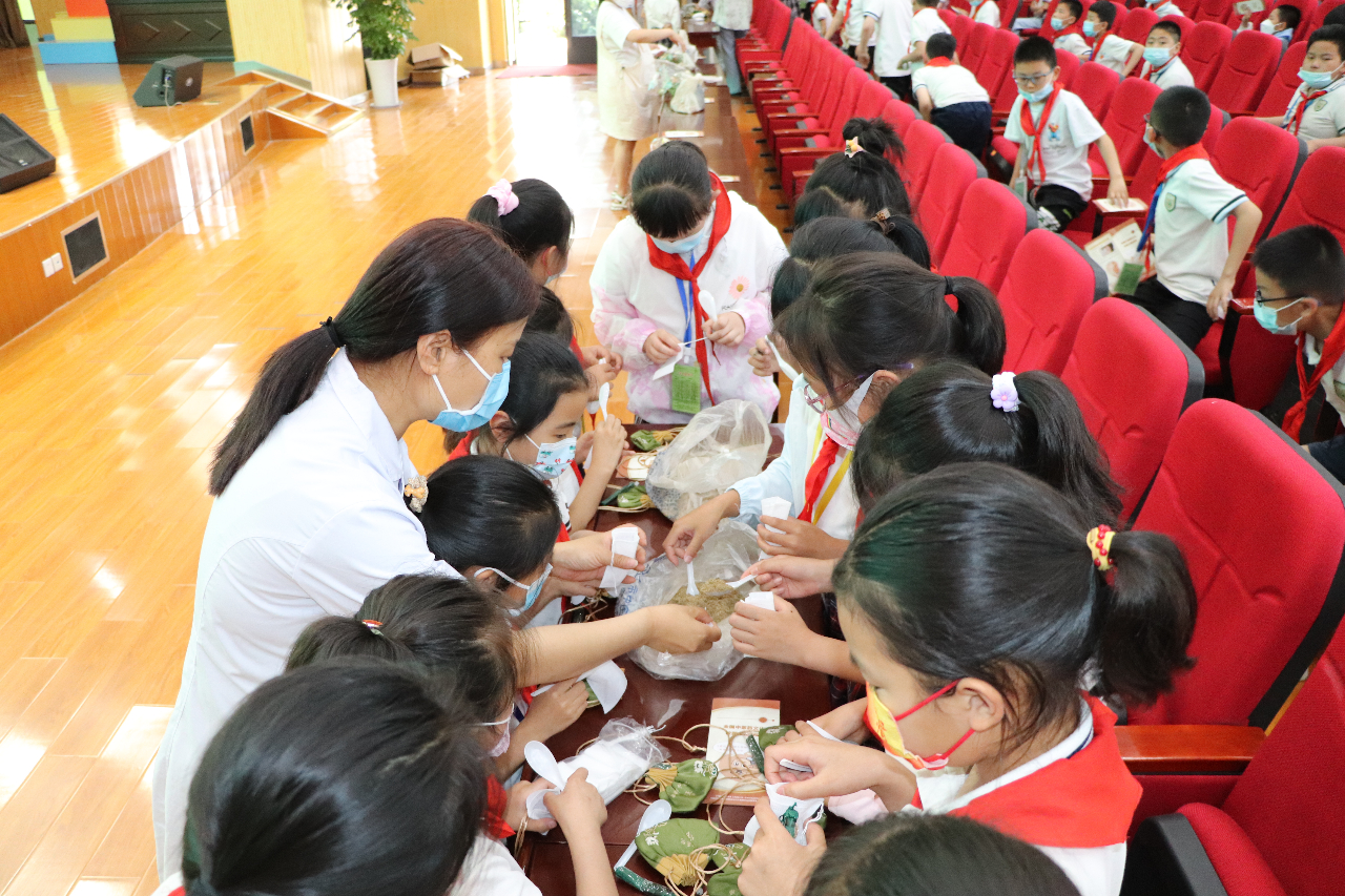 现场,医务人员还与学生们一起制作中药香囊,学生们将已研磨成粉末的中医药材装入香囊,制作出属于自己的“小药囊”。一时间,现场充斥着浓郁的草药香气,学生们欢乐不已。“我奶奶会种艾草,我们会在端午节用艾草洗澡,可以驱蚊虫。”“看,这是我做的护身药包,有了它,就没有蚊子咬我了。”孩子们举着手中的香囊开心地说。