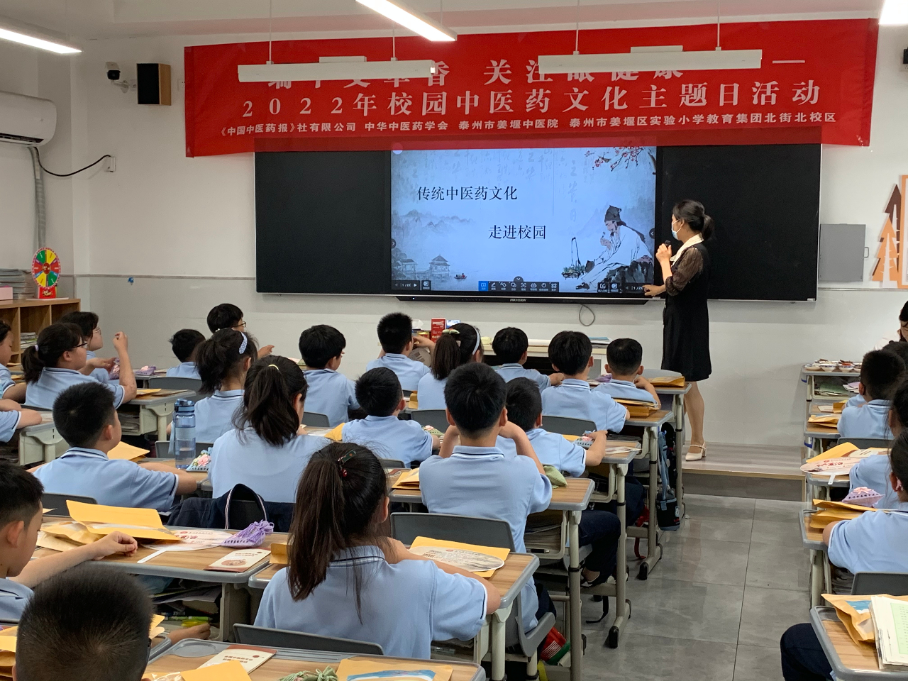 为推动中医药文化繁荣发展,加强中医药文化传播,进一步丰富中小学中医药文化教育,6月6日下午,泰州市姜堰中医院联合姜堰区实验小学教育集团北街北校区开展“端午艾草香 关注眼健康”——2022年校园中医药文化主题日活动。姜堰中医院党委副书记、院长李为春、姜堰区卫健委副主任陈粉扣、泰州市姜堰区实验小学教育集团北街北校区校长陈存梅参加活动。