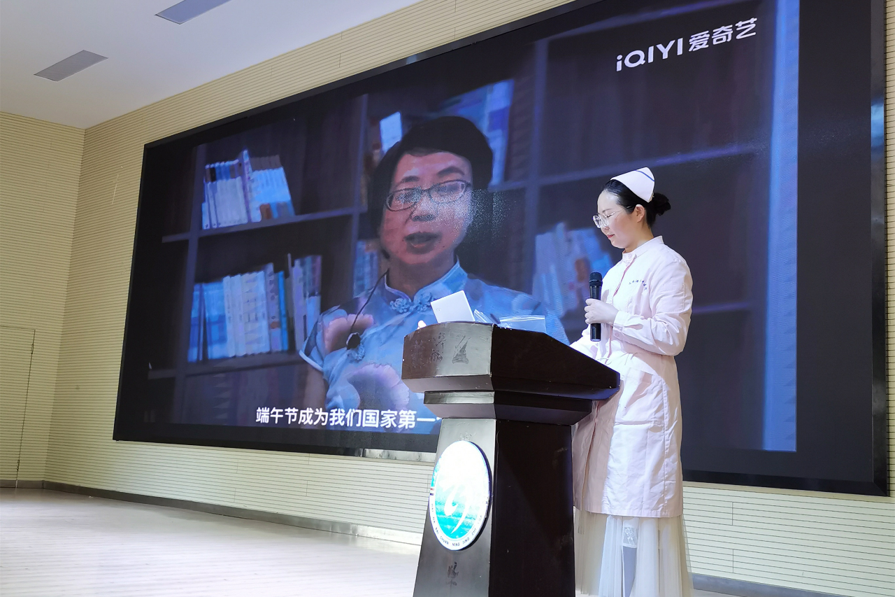 活动中,全国中医护理骨干人才、连云港市中医院国家级中医重点专科针推科护士长滕娟由端阳采艾的传统和《本草歌》引出活动主题,向学生提出端午节传统习俗等问题;学生通过主题视频了解艾草的神奇力量、端午节的起居饮食调配等养生智慧等。