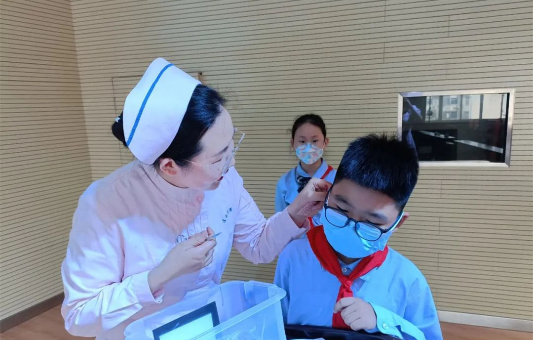 接着,滕娟介绍中医整体观、五行与五官、眼部穴位、明目中药等科普知识,并结合2022年爱眼日主题,补充讲解教授青少年保护视力健康常识 ;现场还开展了趣味提问,检验同学们的学习成果。