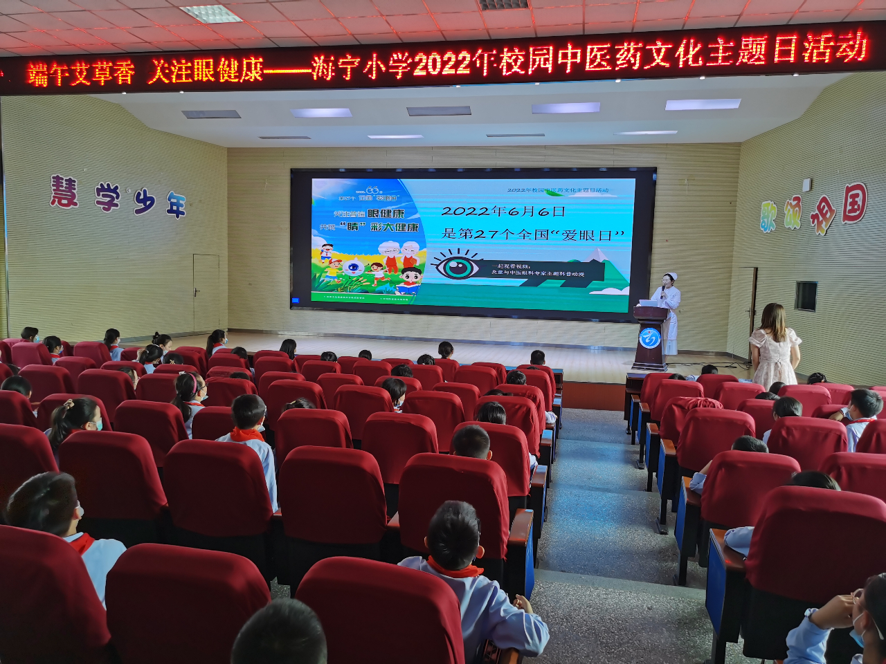 为进一步传承承和弘扬中医药文化,提升青少年文化自信,根据国家中医药管理局、江苏省中医药管理局统一部署,6月2日下午,连云港市中医院组织专家前往海宁小学开展“端午艾草香 关注眼健康”2022年中医药进校园主题活动,让110名小学生亲身体验中医药文化的独特魅力。