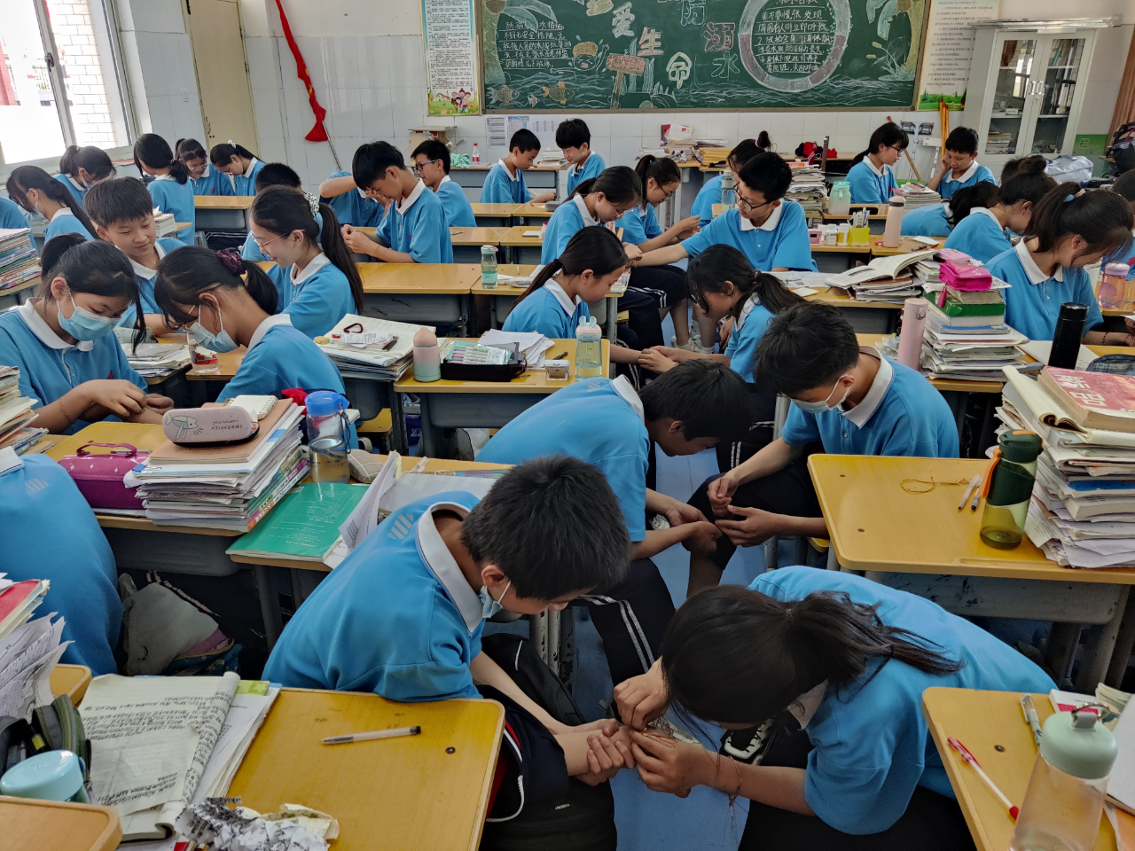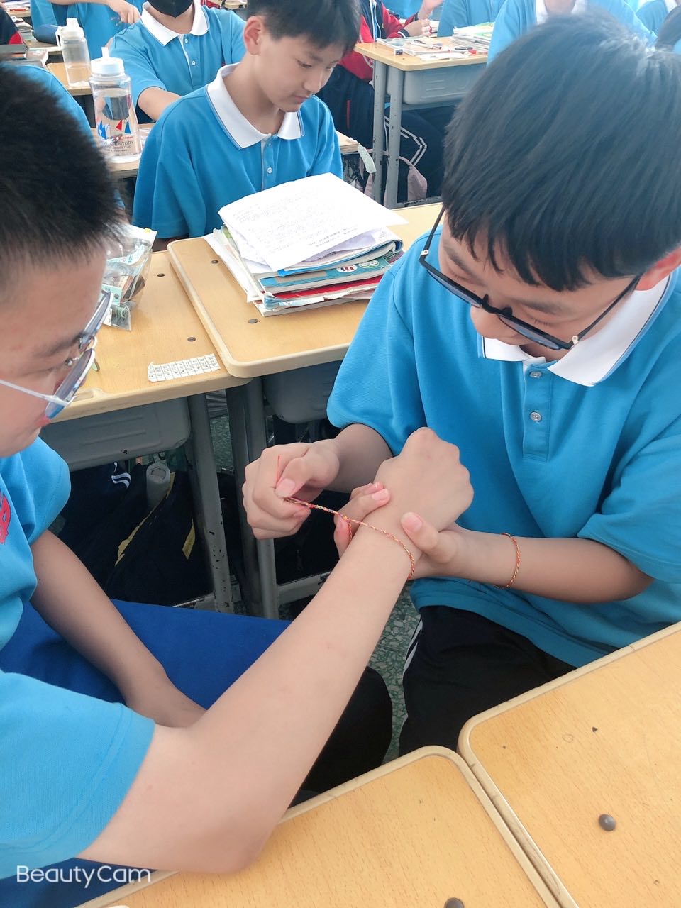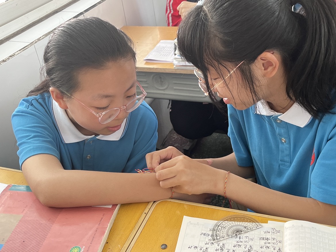 6月2日下午,七八年级各班开展了“端午艾草香 关注眼健康”中医药文化主题班会活动。通过课件、动漫、专家视频及同学们互绑五彩线的活动体验,同学们深入了解了端午节的习俗,掌握了爱眼护眼的小妙招,并争做护眼小护士。