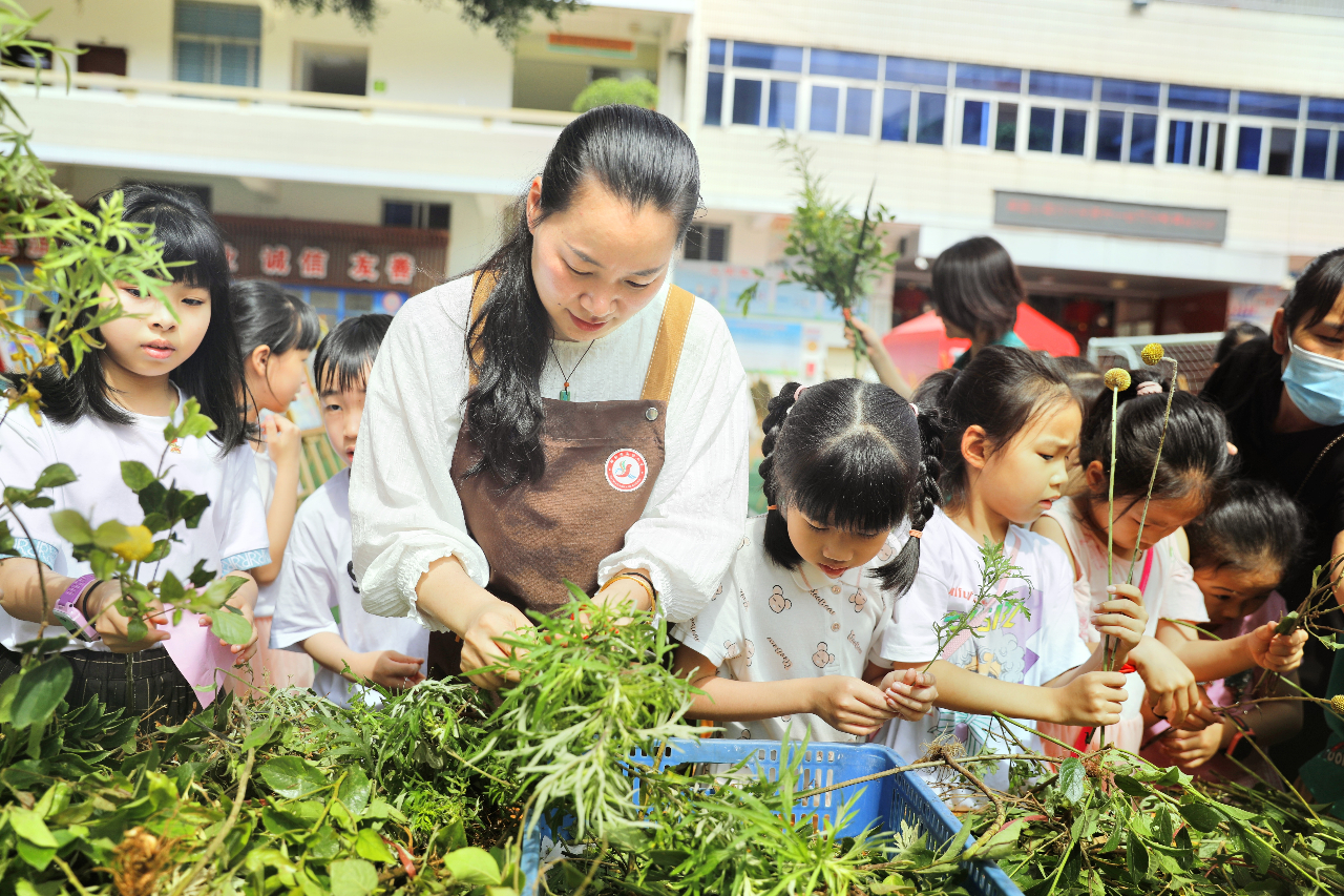 讲座后,学校里开展各种中医药体验活动,校园弥漫着草药的清香,更洋溢着浓浓的节日气息: