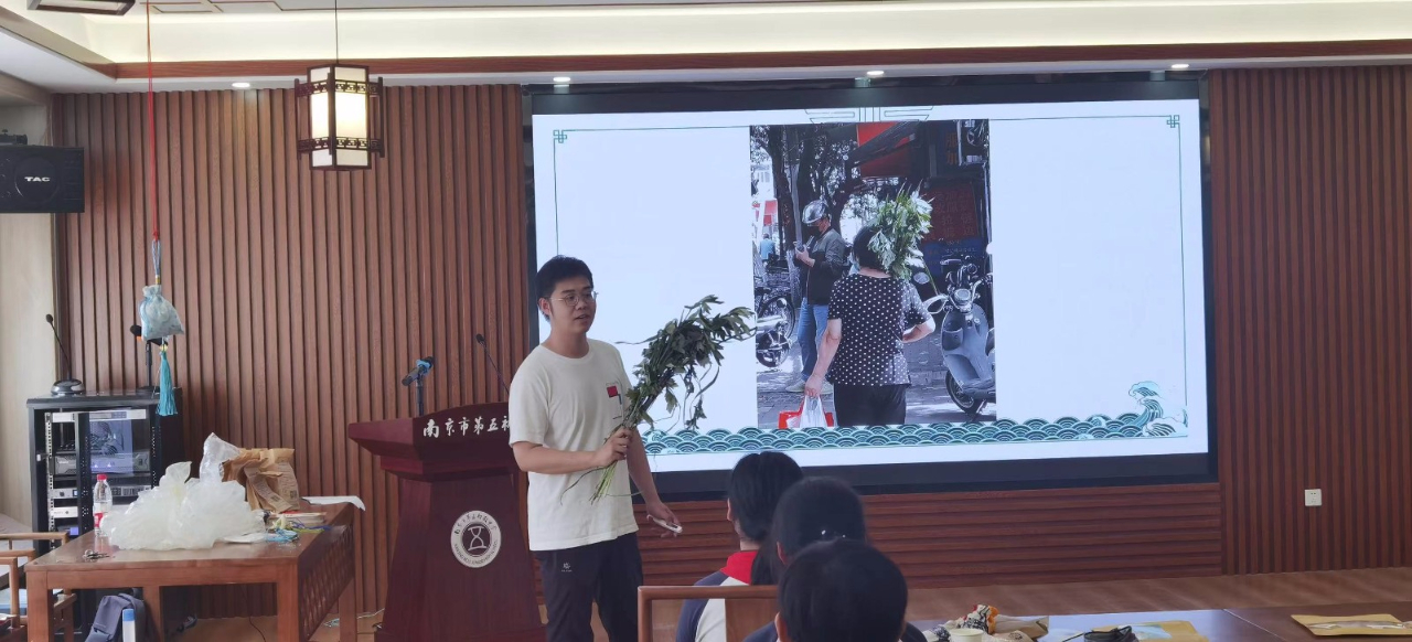 都说“清明插柳,端午插艾”,端午节为什么要门眉上插艾草呢?带着疑问,同学们聆听了湖北中医药大学教授胡真的视频讲解。原来艾草不仅可以装饰,更有驱虫、除湿、驱邪的作用。艾草浑身都是宝,甚至我们常吃的青团也是艾草的嫩叶制作的。通过学习,同学们认识了古人巧妙运用自然植物的智慧,发觉了本草的神奇力量,增进了对中华传统文化的理解和认同。