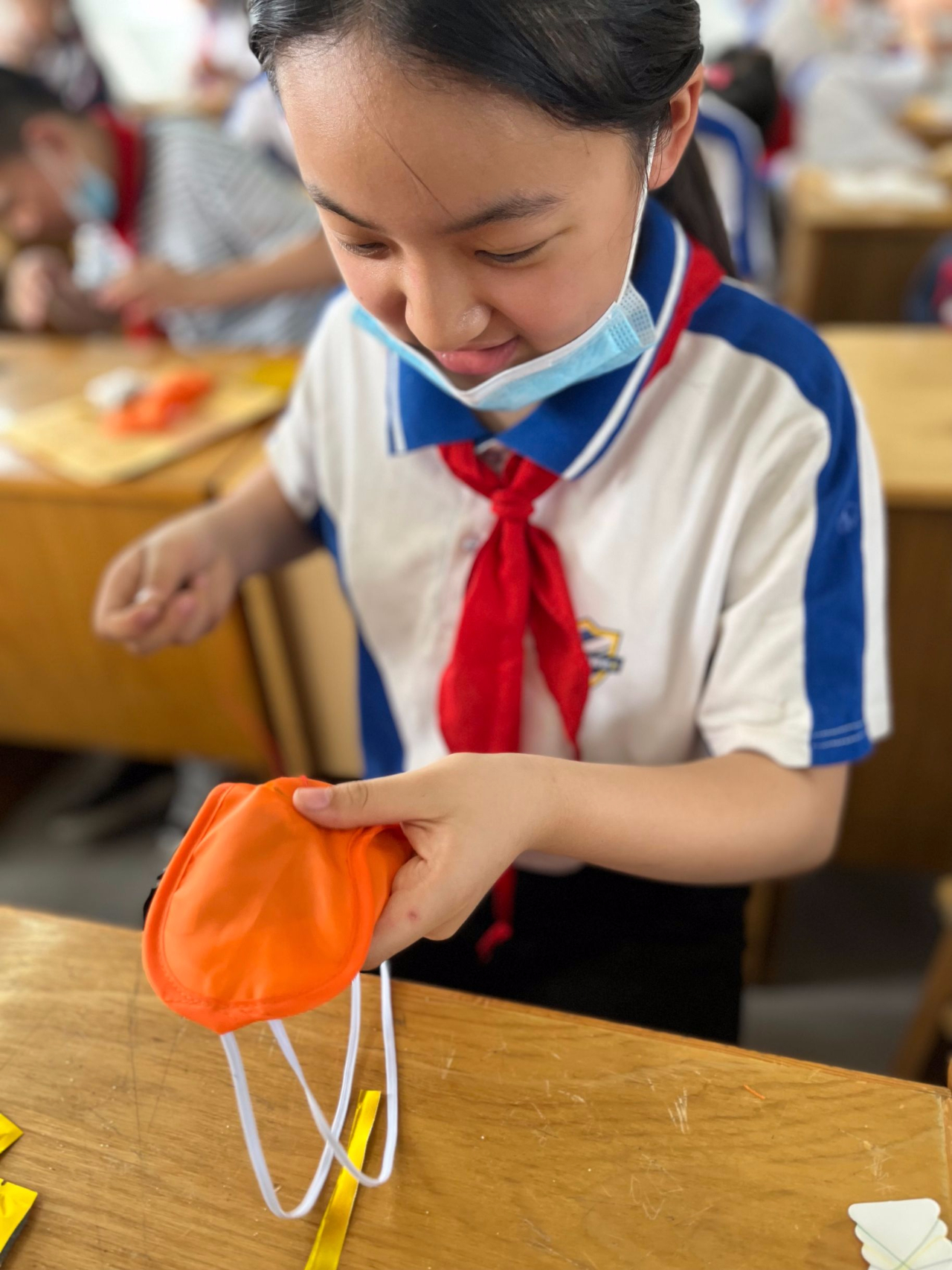 学生动手制作中草药眼罩