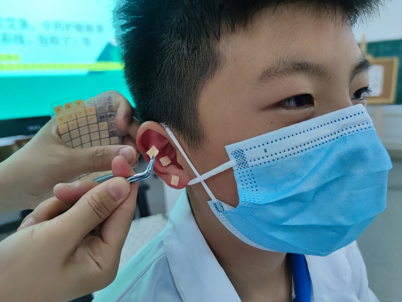 学生体验耳穴疗法