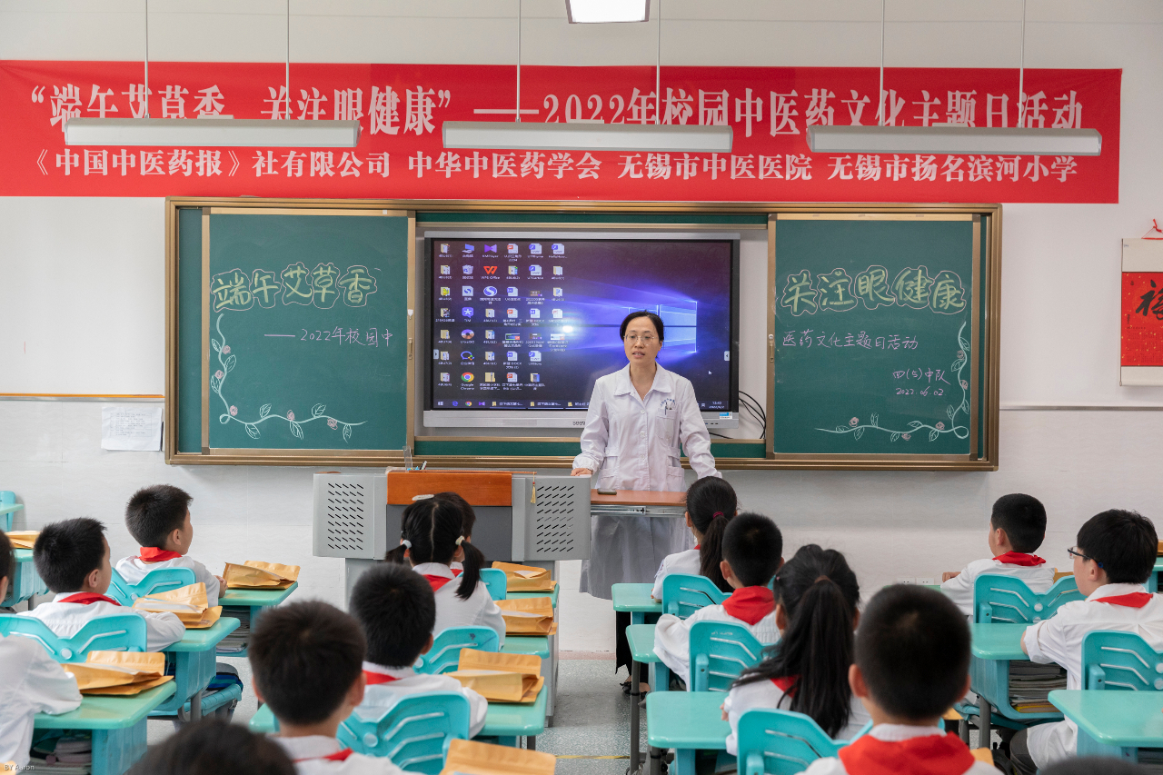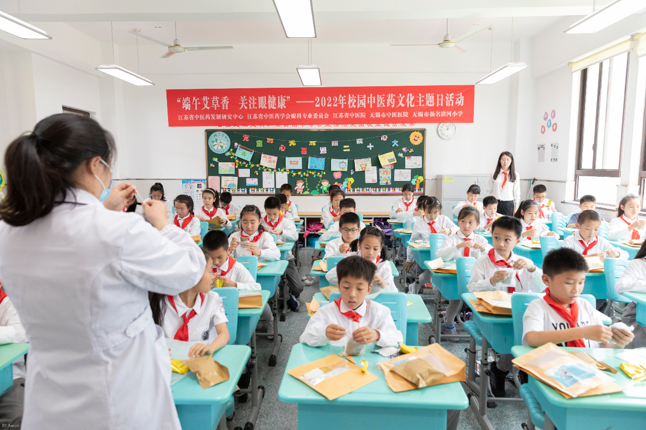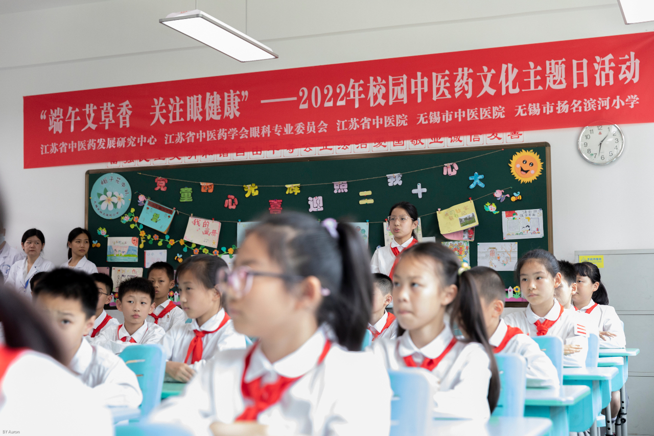 积极响应国家中医药管理局办公室、中国中医药报社、中华中医药学会关于在全国范围内开展的“端午艾草香 关注眼健康”2022年校园中医药文化主题活动精神,无锡市中医医院的医生们走进无锡市扬名滨河小学,为中草药特色中队——四5栀子花中队开展了主题为“端午艾草香关注眼健康”中医药文化进校园主题系列活动。