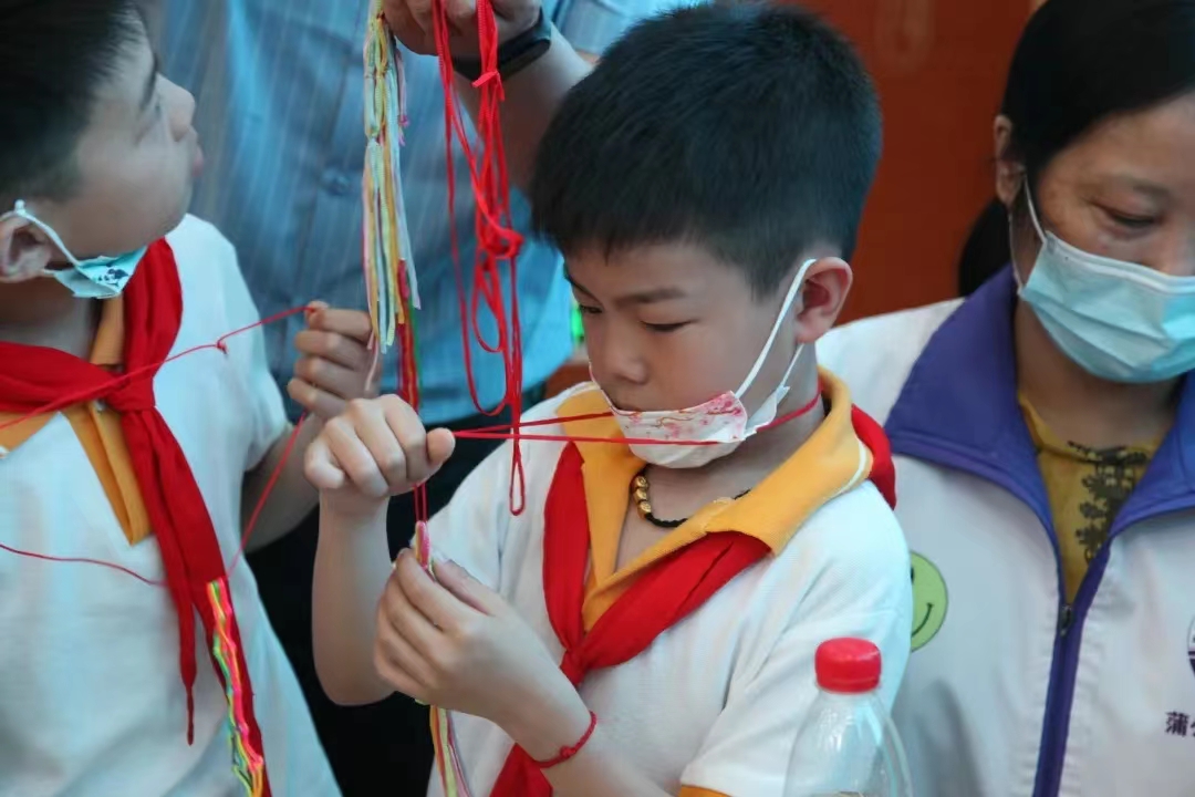 最后,院药剂科、护理部、医务科组织的蒲公英志愿者们,带领小学生们一起互动,自制中药香囊、中药护眼眼罩,手搓艾条,编织鸭蛋络子(蛋兜)。