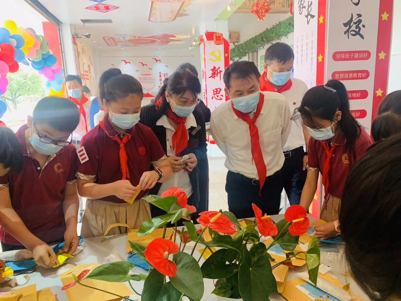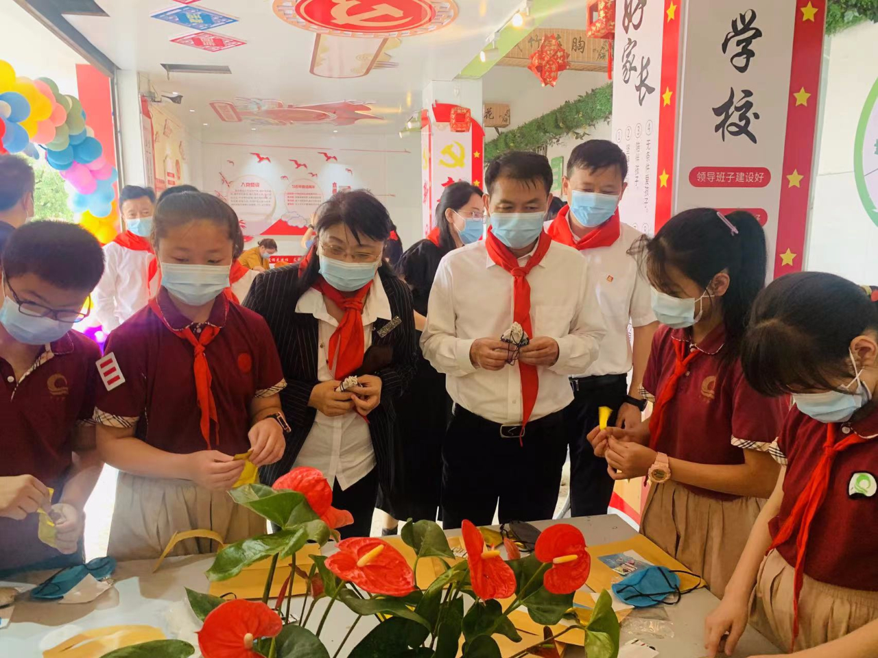 小讲解员向前来参观的各班级学生和老师讲起端午节的由来,讲述屈原的故事,让大家明白端午节不只是粽子节、龙舟节,更是民族节、爱国节。同学们还展示了端午悬挂艾草、佩香囊、赛龙舟、吃咸蛋、吃粽子等民风习俗。当日正直南昌市青山湖区副区长一行到学校慰问全体师生,他们观看了孩子们制作香包,还与孩子们一起动手包粽子。现场欢声笑语、其乐融融。