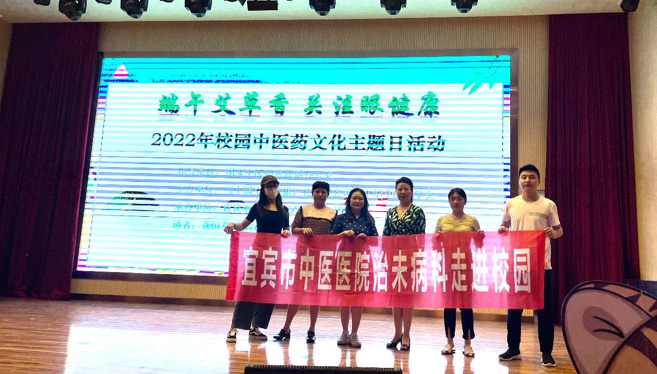 为弘扬中医药文化,帮助学生培养健康用眼的习惯,结合国家五部门印发的《中医药文化传播行动实施方案(2021—2025 年)》中“丰富中医药文化进校园形式,推动各地开展内容丰富、形式多样的中医药文化进校园活动”的要求,6月1日至6日,宜宾市中医医院眼耳鼻喉科、针灸科、康复科医护人员联合宜宾市翠屏棠湖外国语学校、宜宾市虹桥幼儿园及宜宾黄冈实验学校共同开展“端午艾草香,关注眼健康”2022年中医药文化进校园主题活动。
