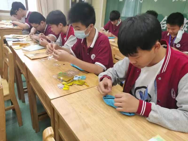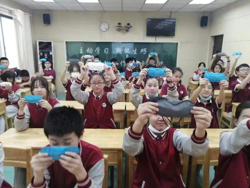 祛湿散寒的艾叶、辛温芳香的丁香,清利头目的薄荷,教室里满是中药的香气。这些未曾接触过中药材引起了大家的好奇心,同学们纷纷举手发言询问。在老师的指导下,同学们逐步将一味一味药材放入古香古色的眼罩中,一个又一个带着中药芳香的眼罩就这样呈现在大家眼前。
