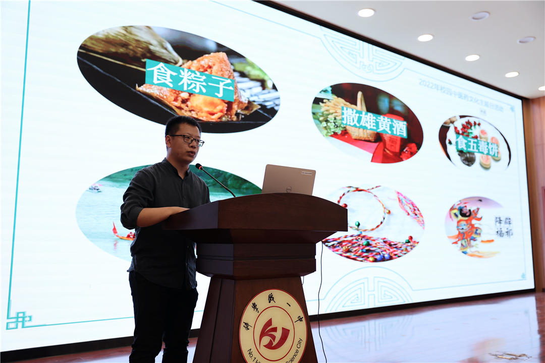 食粽子,撒雄黄,食五毒饼,赛龙舟,挂五彩丝线,悬钟馗像。开场的一张张图片让同学们回忆起端午节的美好时光,迅速进入到了活动的状态。