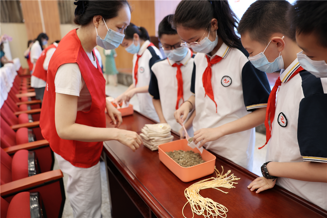 在学校行政办王娟副主任和绵阳市中医医院王医生的组织下,同学们开始了第三个动手互动环节。