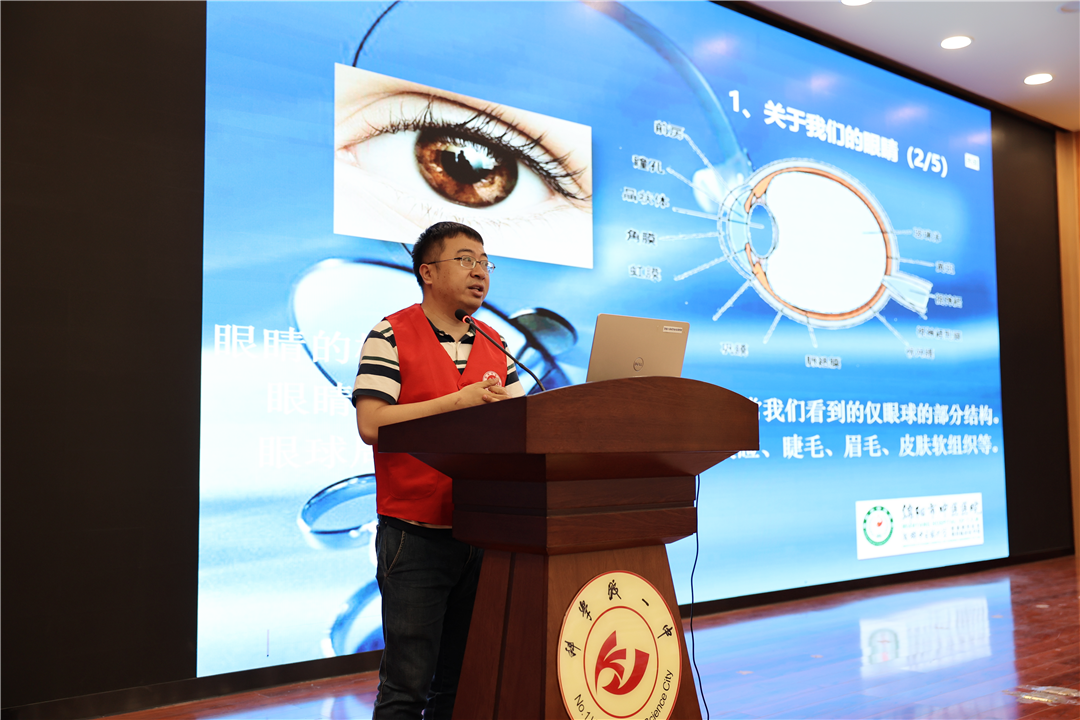 活动的第二个环节“中医药文化科普”是由绵阳市中医医院的眼科专家王医生向同学们进行青少年保护视力健康常识的科普。