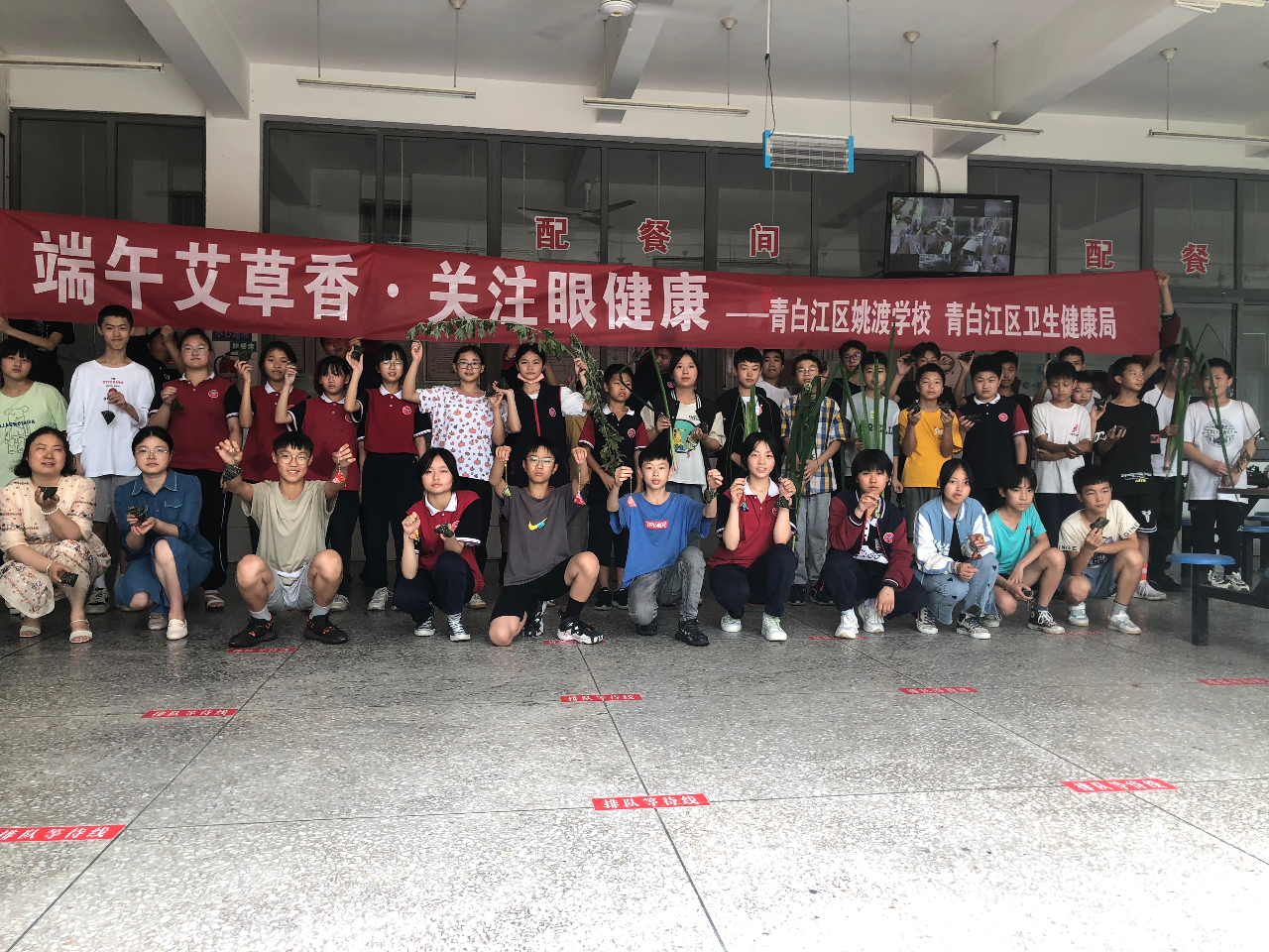 在中国传统节日端午节到来之际,为进一步弘扬民俗文化,开发与实践中外人文视野下中医药文化特色劳动校本课程。6月1日下午,四川省成都市青白江区姚渡学校在学生食堂一楼组织学生开展了“端午艾草香 关注眼健康”2022年校园中医药文化主题日活动。此次活动,由国家中医药管理局指导,《中国中医药报》社有限公司主办,青白江区卫健局承办。本次活动主要分为:中医药文化课程学习,包粽子劳动课程以及与学校国际友好姊妹校马来西亚柔佛州新山县宽柔一小开展端午节线上交流活动。