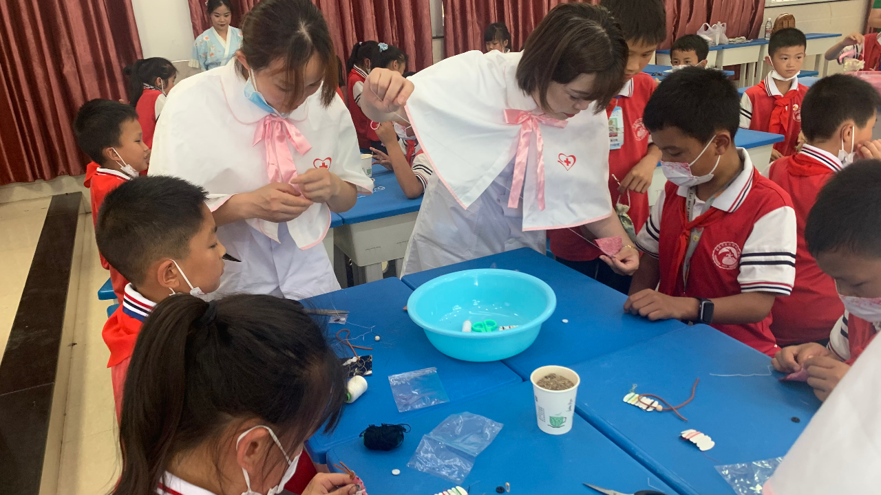 活动开始由隆昌市中医院护理科唐名英为学生讲解了关于端午节的由来、别称、以及都有哪些习俗。重点讲解了关于端午节的由来、别称以及相应的习俗。唐老师还给学生带来了一位新朋友——灸童。通过对新朋友的认识,了解中医药爱眼、护眼小妙招。市中医医院医务人员现场教授学生做眼保健操的正确穴位,并纠正学生错误的按眼习惯,让学生对中医护眼有更清晰的认识。