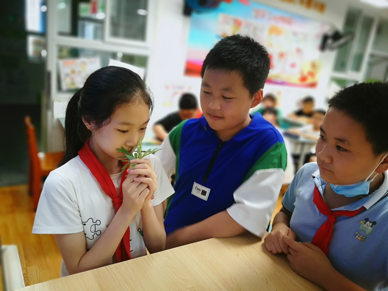今年植树节,学校在童辛园种植了二十多种中草药,艾草也在其中。今天活动开始前,5.1班的同学在他们的种植园里剪裁了一小段一小段艾草,分送到各个班级,小小的艾草在同学们手中传递,同学们用眼看看、用鼻闻闻、用手摸摸,像极了中医的望闻问切。