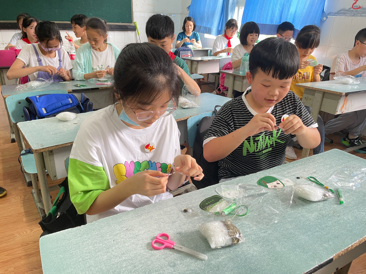 佩戴香囊是端午节传统习俗之一,为增强学生们对这一习俗的了解,5.1班6.2班还开展了巧手制香囊的活动。在老师和家长的指导帮助下,一个个圆圆鼓鼓,药香四溢的香囊就从孩子们手中诞生了,闻一闻,真香。