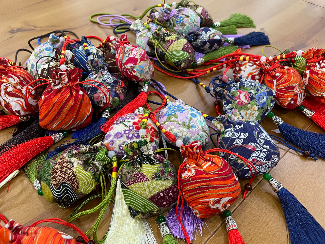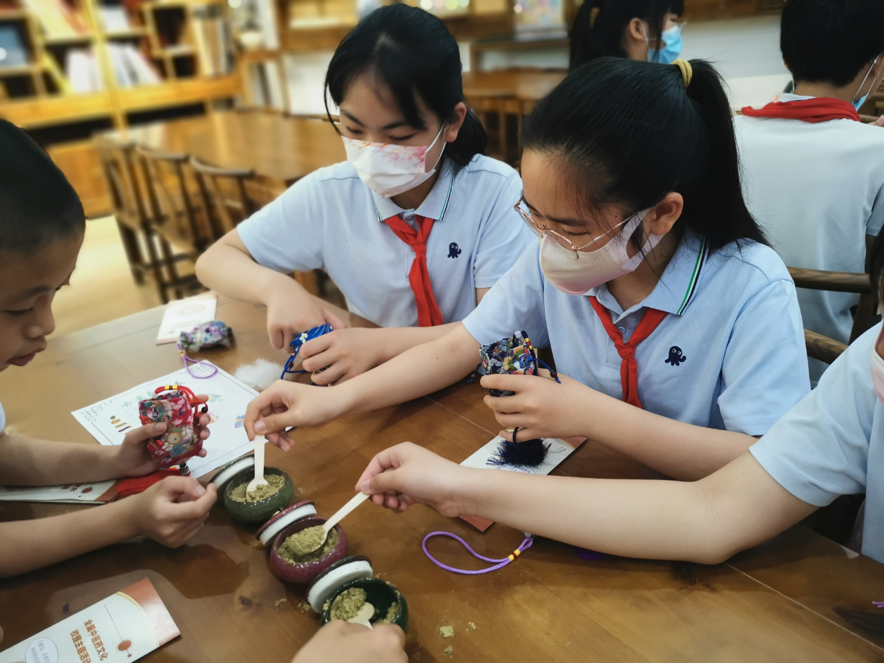 挑选一个心仪的香囊袋子,在校医和小助手的指导下,先抓一团棉絮塞在香囊底部,舀上一勺药粉,轻轻地倒入香囊,再盖上一层棉絮,扎紧口子。轻轻地揉捏圆鼓鼓的香囊,药粉独特的香味就渐渐渗透出来。