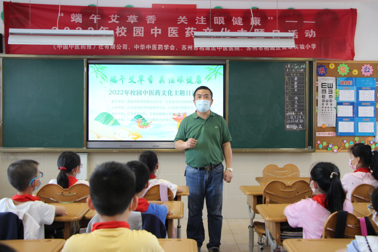 艾叶飘香时,端午佳节至。为进一步丰富孩子们的中医药文化知识,让孩子们感受传统文化的博大精深,促进孩子们养成健康的生活习惯,经由国家中医药管理局办公室、中华中医药学会、江苏省中医药发展研究中心、江苏省中医药学会眼科专业委员会、江苏省中医院等相关部门的指导,结合全国第27个爱眼日,6月2日,黄埭实验小学联合相城区中医医院开展了“端午艾草香 关注眼健康”中医药文化主题日活动。