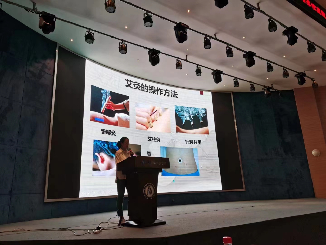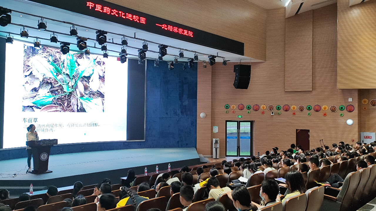 其次,中医科程秋月医生向同学详细介绍了身边的中医药及中医药文化。先教了同学们一套颈椎放松操,以保持良好的学习状态。然后,从中医的起源和发展历史、中医四大经典著作、古代名医、中医疗法、药膳、身边的中草药等方面,进行了科学知识普及,并鼓励大家向屠呦呦等科学家学习,用知识和创新服务社会。