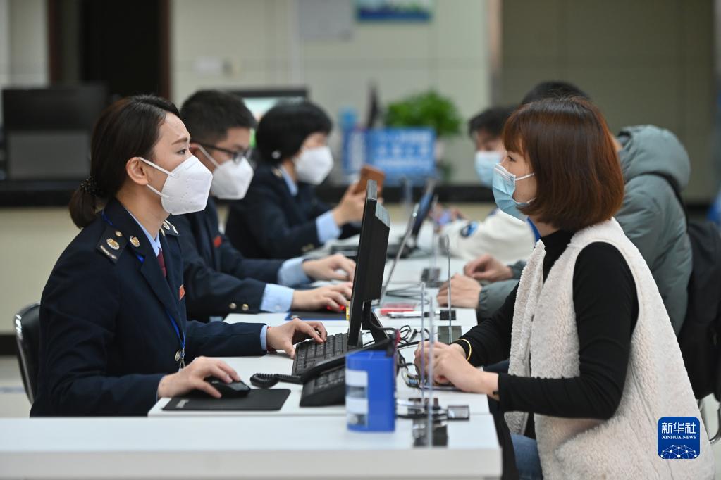 在福州市闽清县办税服务大厅,工作人员向企业工作人员介绍税惠政策(2023年2月13日摄)。新华社记者 周义 摄