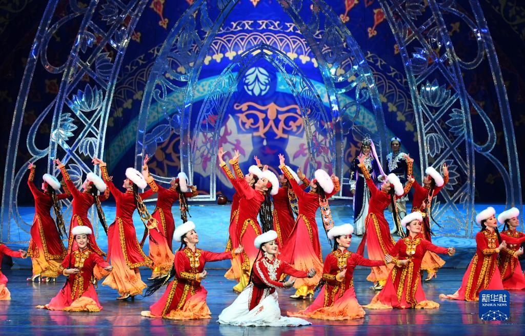 在新疆木卡姆艺术团剧场,演员在表演《木卡姆印象》(2017年8月3日摄)。新华社记者 王菲 摄