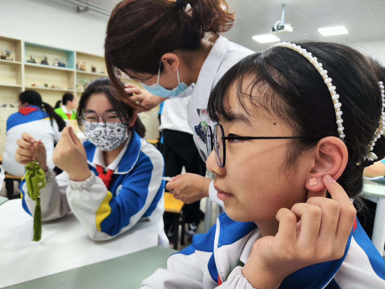山东省泰安市泰山学院附属中学学生体验耳穴压豆