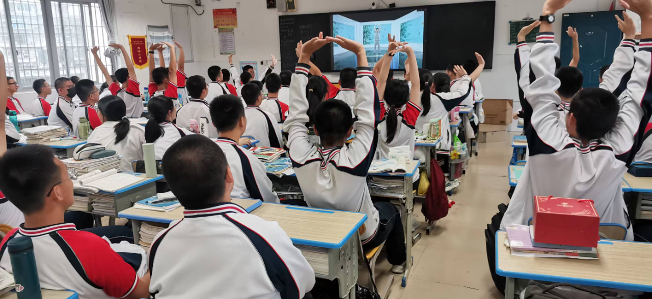 活动中,师生通过中医药科普动画短片学习脊柱在人体中的重要地位,讨论探讨脊柱侧弯的危害,学习脊柱侧弯的“六步筛查法”,并分组相互筛查。同学们还跟着国家级非遗华佗五禽戏代表性传承人互动演示的五禽戏教学视频,进行练习,学练结合,共同总结脊柱侧弯预防举措。更重要的是,孩子们回家后将课上习得的“六步筛查法”和中医传统养生功法与父母交流,和父母一起练习。学校和家庭的共同关注,给予防控青少年脊柱侧弯教育活动更强大的力量,对帮助同学们关注脊柱健康起到积极的推进作用。