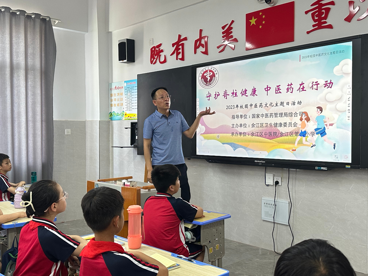 为充分发挥中医药在青少年脊柱侧弯防治中的积极作用,在国家中医药管理局综合司指导下,针对儿童青少年肥胖、脊柱侧弯等健康问题,余江区中医院于2023年5月29日派4名医护人员走进余江区第一小学开展“守护脊柱健康 中医药在行动”2023年校园中医药文化主题日活动。