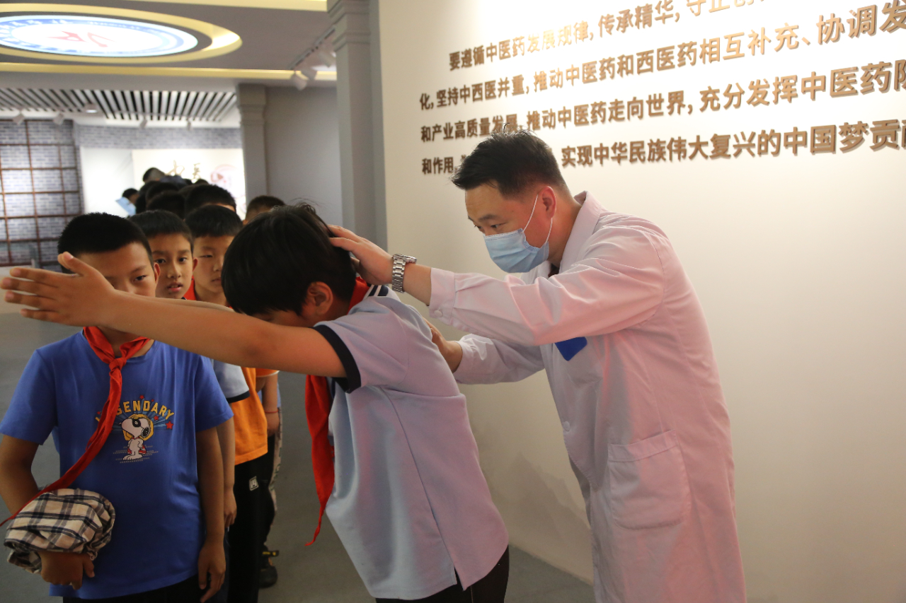 玄丽娜带领团队还对学生进行了公益脊柱健康筛查,引导学生了解脊柱健康相关知识,掌握脊柱生长发育情况,及早发现及预防脊柱侧弯的问题。最后,玄丽娜团队在学校工作人员的陪同下,参观了学校自建的中医药文化馆。在参观过程中,玄丽娜一行对学校开辟中医药学习场所、营造中医药学习氛围给予了高度赞扬。