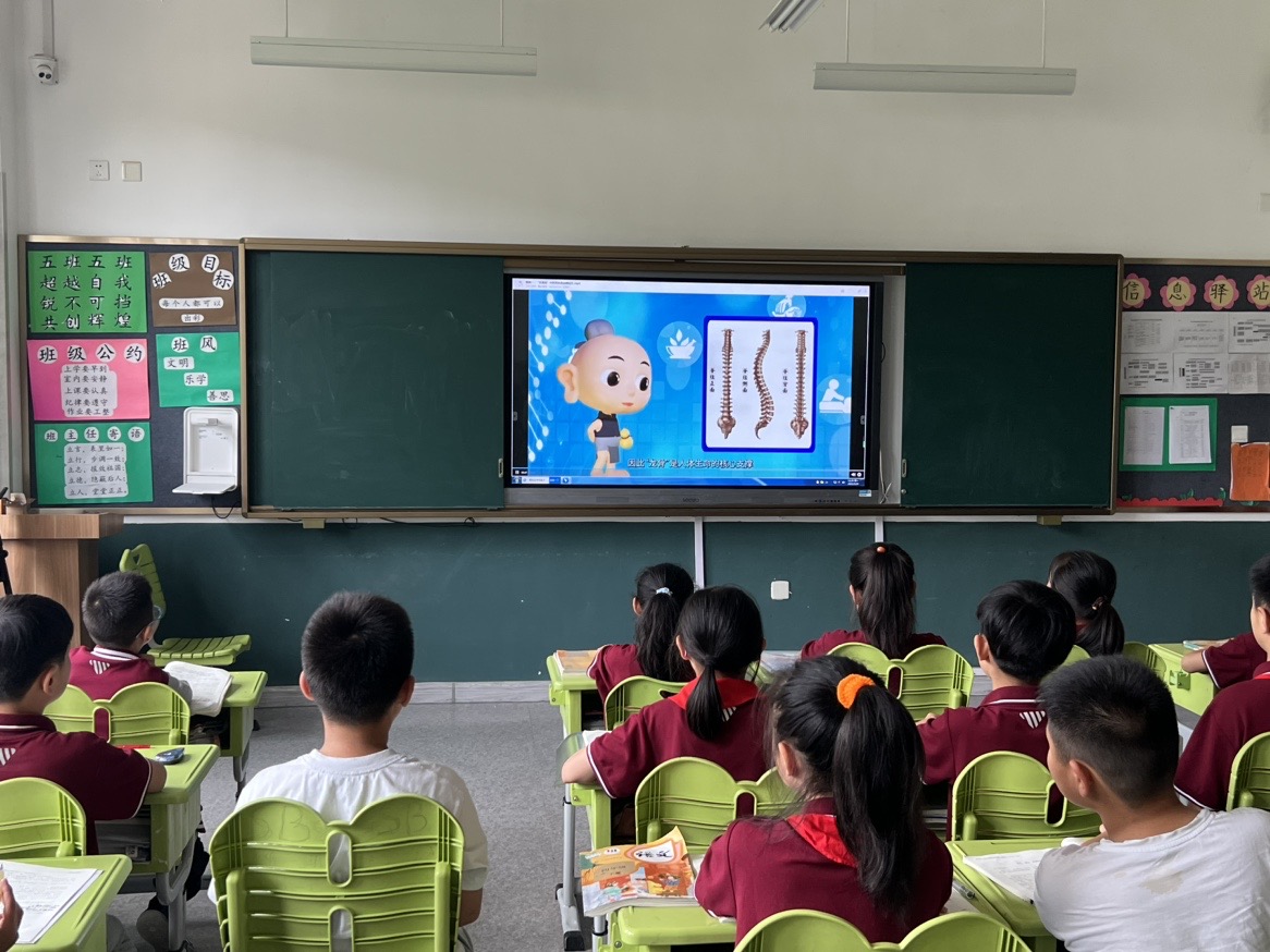 山东省潍坊高新金马公学同学们观看“灸童说”中医药科普短片
