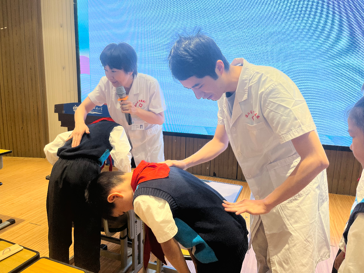 表演结束后,温江区中医院的李杜非医生为2.2班的同学们带来了丰富有趣的“守护脊柱健康 中医药在行动”中医药文化主题课。