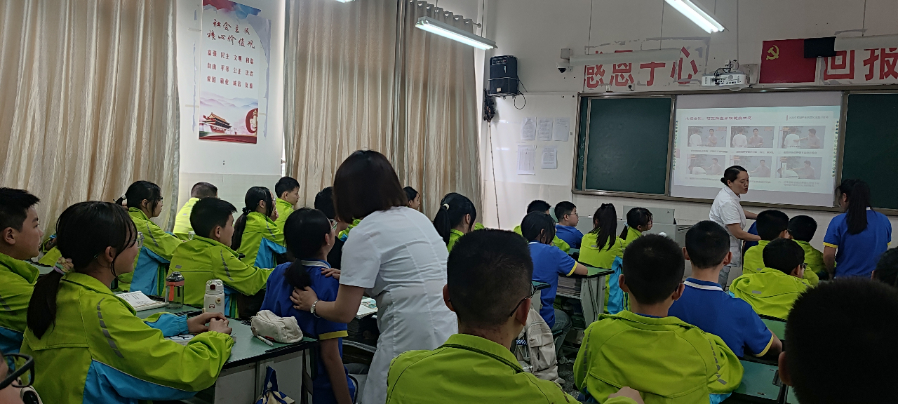 医院骨伤科护士长范青兰通过图文形式生动详细介绍了脊柱的功能、常见脊柱疾病以及脊柱侧弯形成的原因及危害,讲解了如何预防脊柱相关疾病的健康知识。带领同学们一起小组协作,通过播放对照视频运用“触手可脊——六步筛查法”进行脊柱健康状态自我筛查。督促同学们通过日常正确的站姿、坐姿、走路姿势、卧姿,真正做到“站如松、坐如钟、行如风、卧如弓”。并现场教授同学们习练中医药传统养生功法之一五禽戏,打通“任督”二脉。通过有奖问答检验学习效果并赠送了中药香囊, 学校师生们兴致高涨,踊跃参与抢答互动,现场气氛热烈。