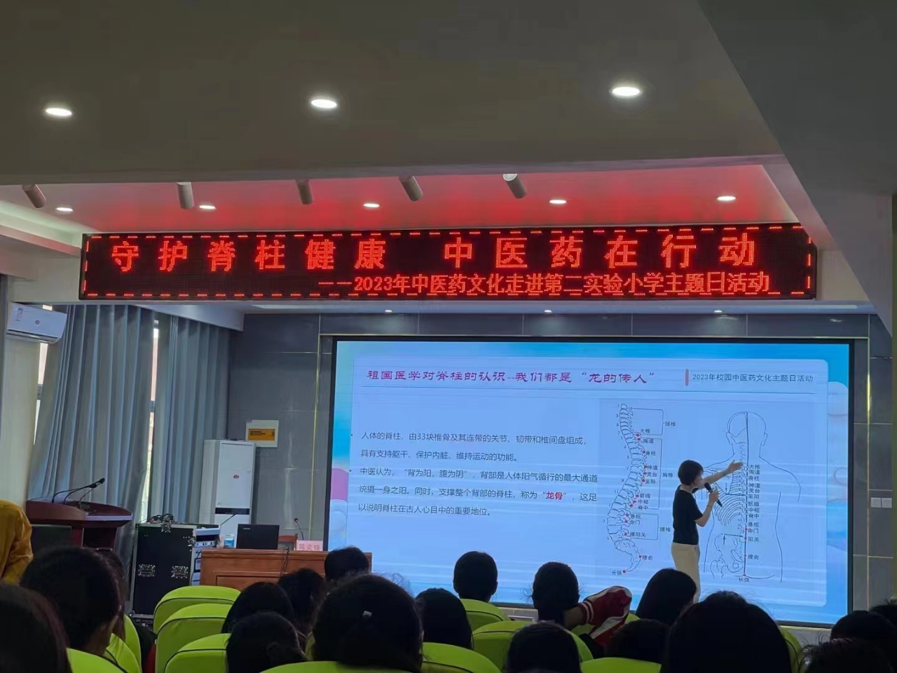 为传播中医药健康知识,提高学生的中医药文化素养,2023年5月25日上午,鹿邑县卫健委、鹿邑县中医院走进鹿邑县第二实验小学开展以“守护脊柱健康 中医药在行动”为主题的中医药文化进校园活动。
