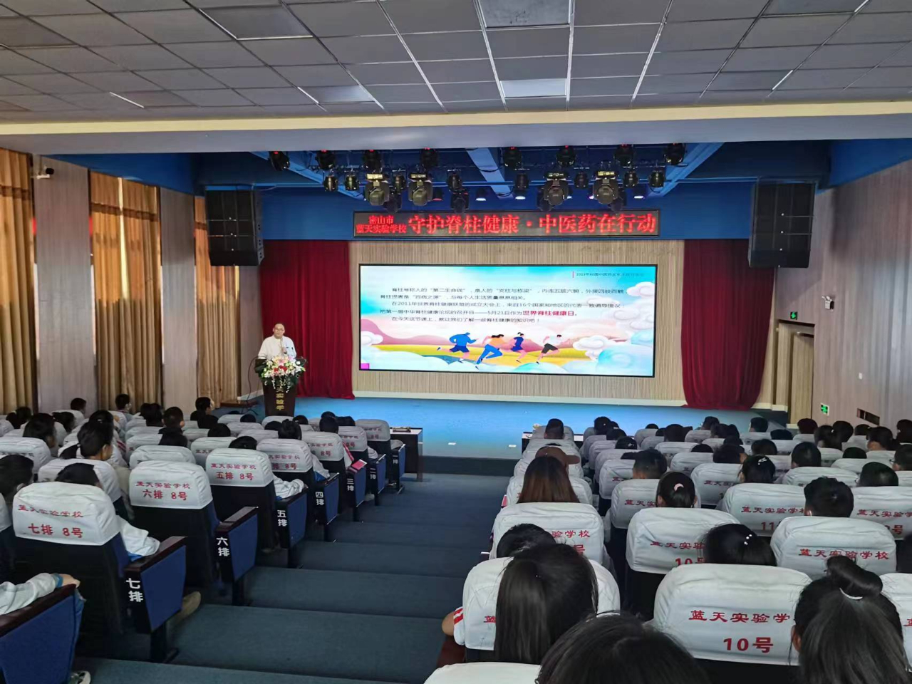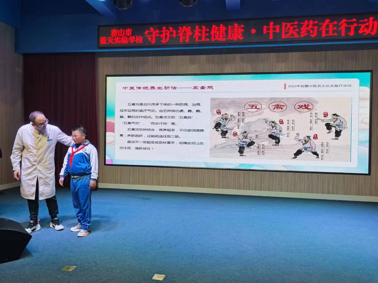 通过播放科普短片,展示不良坐姿对脊柱造成的影响,了解脊柱侧弯的危害,加强青少年的重视。并邀请康复科主任现场介绍脊柱的正常构造以及如何通过养生功法对脊柱进行有效的锻炼和保健。