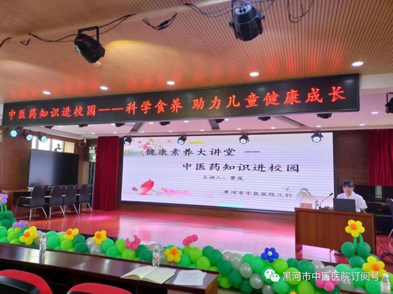 本次活动的主讲人为黑河市中医医院贾岚,《守护脊柱健康,中医药在行动》为主题的健康知识讲座,带领师生了解脊柱侧弯相关知识,让大家在学习、工作和生活中采取正确的预防措施,建立更加科学健康的生活方式,提高师生对脊柱侧弯的认知度,并现场和孩子们一起练习中医传统保健功法八段锦。