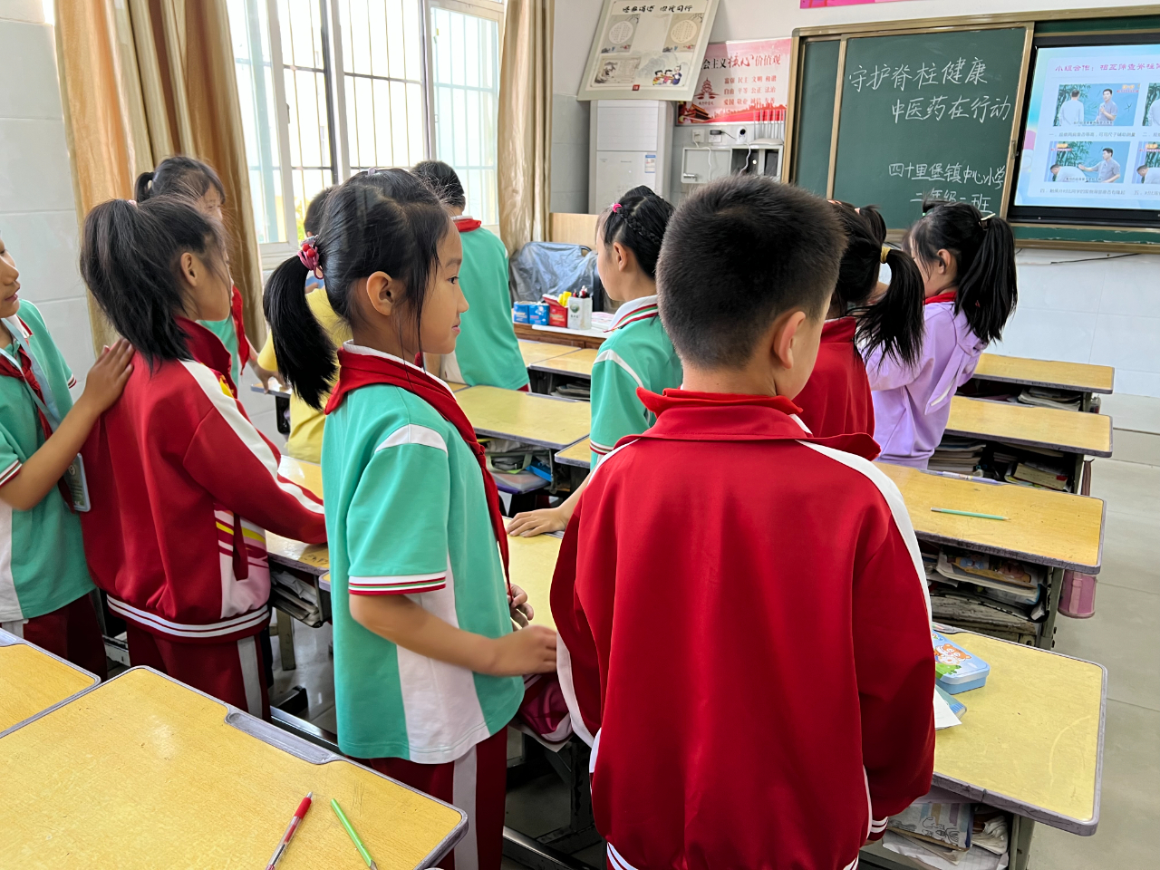 四十里堡镇中心小学作为山东省中医药文化进校园试点学校,通过组织开展“八虚拍打操”“八段锦”等传统文化特色养生操、中医药文化进课堂等特色活动,提升学生身体素质和综合素养,培养德智体美劳全面发展的社会主义建设者和接班人。
