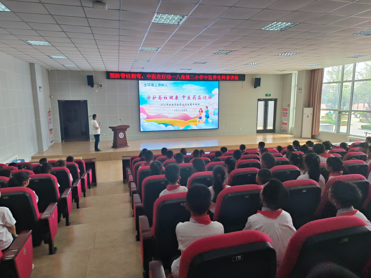 为全面落实“双减”政策,护航学生健康成长,5月26日下午,八角第二小学开展了预防脊柱侧弯健康知识讲座。此次讲座旨在发挥中医药在青少年脊柱侧弯防治中的积极作用,推进脊柱侧弯健康知识普及,提高同学们的脊柱健康意识。