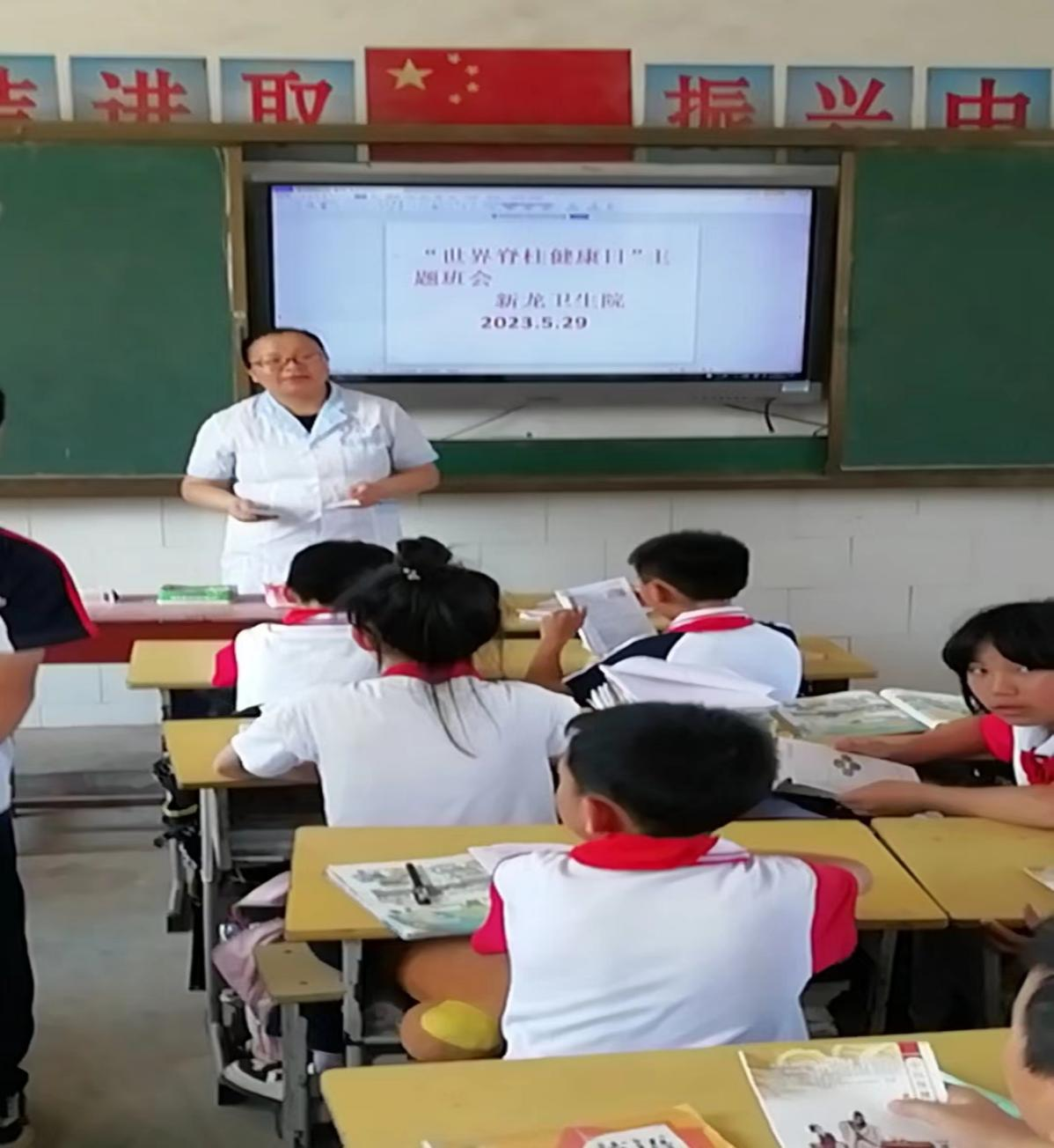 为提高新龙乡中小学校对中医药文化知识的掌握,引导儿童青少年养成良好的生活习惯,提高小学生对自身健康成长的重视程度,新龙乡卫生院组织医务人员开展主题为“世界脊柱健康日”主题班会。
